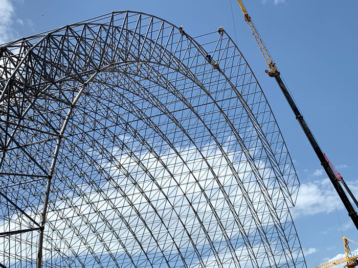 (2)网架加工前应对现场尺寸进行复测,确认无误后方可进行加工、安装;网架制作、运输、安装应遵守《空间网格结构技术规程》JGJ7-2010、《钢网架高邮螺栓球节点》JG/T 10-2009、《钢网架高邮螺栓球节点用高强度螺栓》 GB/T 16939-2016、《高邮钢结构高邮工程高邮施工规范》 GB50755-2012、《高邮钢结构高邮工程高邮施工质量验收标准》 GB50205-2020。